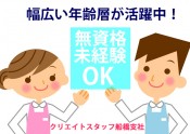 病棟ナースエイド(看護助手) ・食事介助(配膳、下膳、食事のサポート) ・入浴介助(更衣介助、洗身・洗髪サポート) ・排泄介助(オムツ交換、トイレ誘導) ・患者様案内 ・外来診療補助 など 【基本的な1日の流れ】 ★午前 朝食の準備の準備(配膳・下膳・食事の介助)→ベッド周囲の拭き掃除と整理→シーツの交換→おむつ交換・体位変換→検査時の付き添い→昼食の準備(配膳・下膳 ・食事の介助) ★午後 入浴の介助・足浴や洗髪のお手伝い→おむつ交換・体位変換→備品の整理→業務終了 |