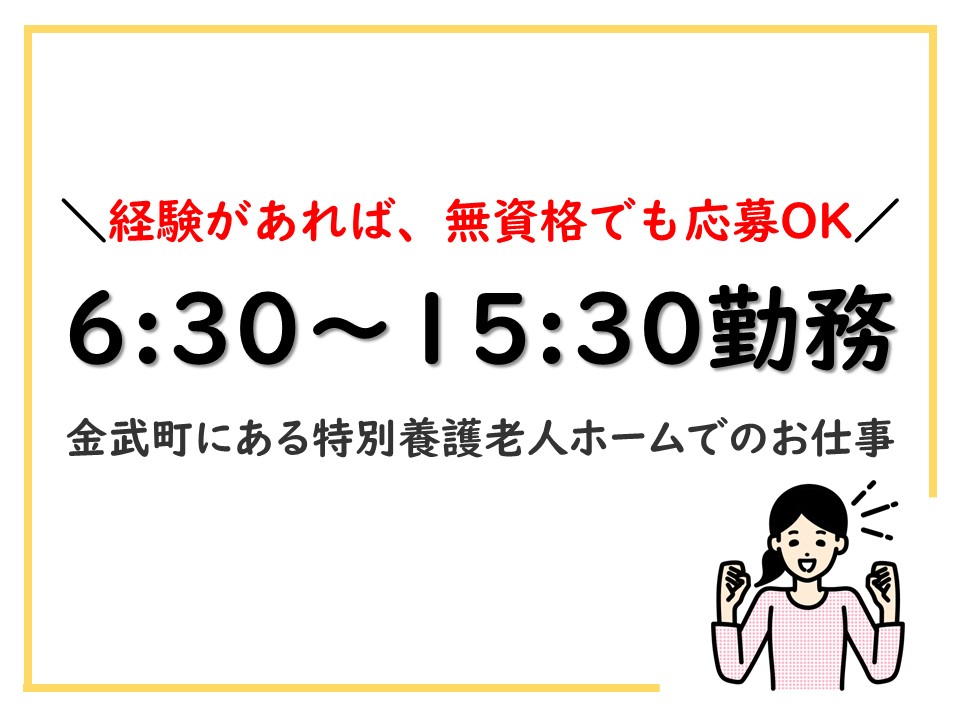 特別養護老人ホームでの介護職業務 ・起床の手伝い ・食事介助 ・入浴介助 ・排泄介助 ・移動移乗のサポート |