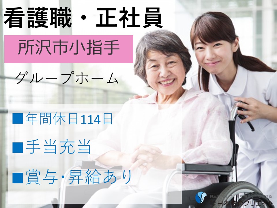 \月給19万円以上/グループホームの介護福祉士【所沢市小手指】介護福祉士必見・年間休日114日・手当充当・賞与昇給あり