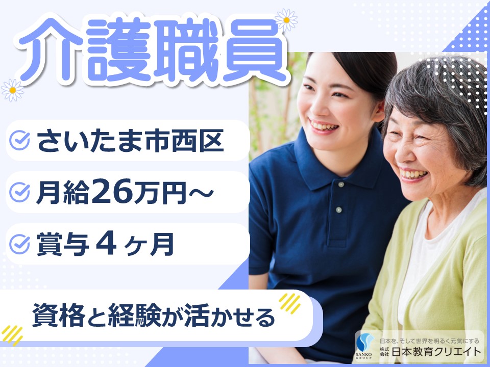 | コンサルタントから一言 | 最後までご覧いただきありがとうございます。 ★「ちょっと気になる…」と思ったら、まずは「求人に応募」をクリック! 応募したら必ず働かないといけないということはありません! ・昇給や残業など、本当はどうなのか知りたい ・どんな人が採用されたのか知りたい 求人詳細について気になる点がございましたらお気軽にお問い合わせください♪ 三幸福祉カレッジを運営する(株)日本教育クリエイトの介護職専門就職アドバイザーが、お仕事決定までトータルサポート。就職・転職支援は、完全無料です! あなたの「納得」を一緒に実現しましょう。 ご応募お待ちしています。 |