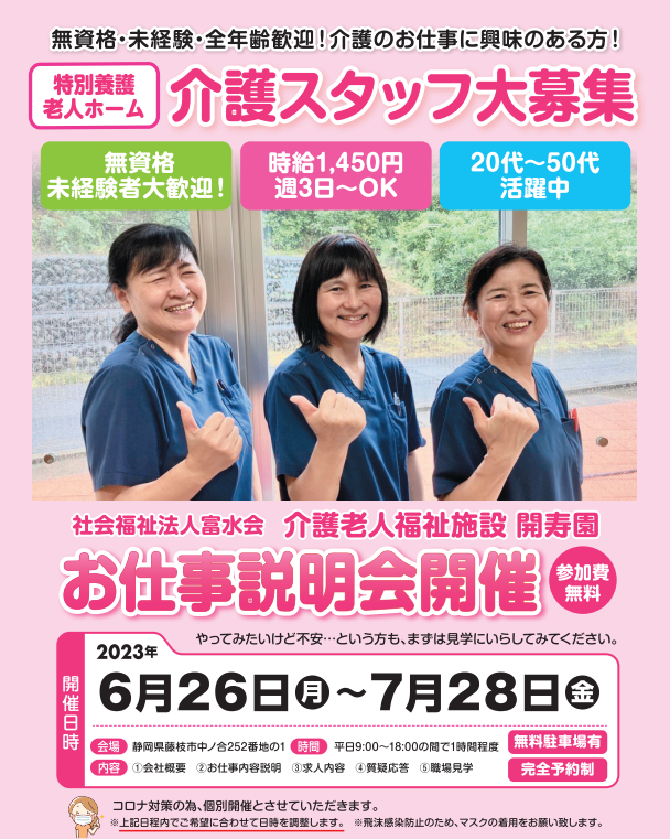 【個別見学会 開催】静岡県藤枝市★介護老人福祉施設 開寿園
