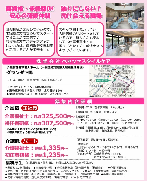 【施設見学会 開催】ベネッセスタイルケアの有料老人ホーム★東京都世田谷区★未経験大歓迎★介護スタッフ大募集