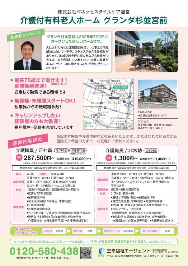 【施設見学会 開催】2025年7月オープン!月給28.7~31万の高待遇!『グランダ杉並宮前』東京都杉並区★介護スタッフ大募集