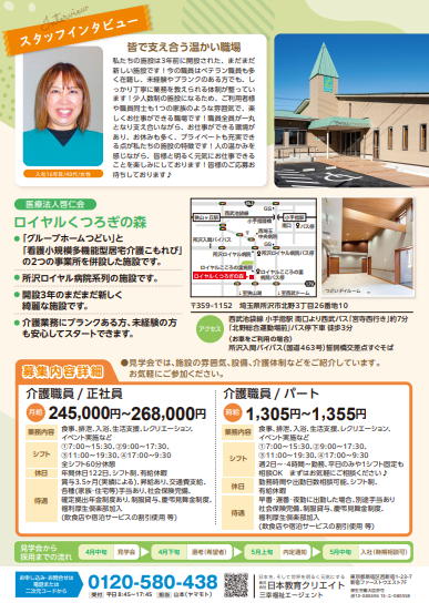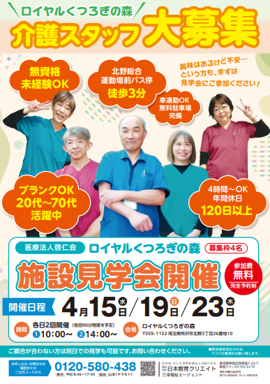 【施設見学会 開催】開設3年目『ロイヤルくつろぎの森』埼玉県所沢市★無資格・未経験・ブランクOK◎20~70代の幅広い年代のスタッフが活躍中★介護スタッフ大募集