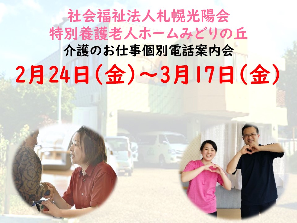 特別養護老人ホームみどりの丘♪介護のお仕事電話案内会【札幌市豊平区】2/24~3/17【予約必須】介護スタッフの正社員募集♪