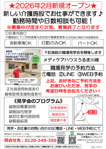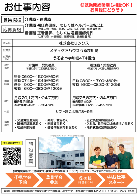 【株式会社リンクス】2026年2月新規OPEN|うるま市川崎|フルタイム|介護職|介護福祉士|看護師|施設見学会実施中