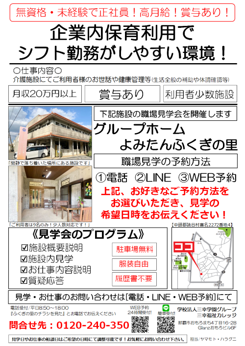 【グループホームよみたんふくぎの里】介護職員募集|正社員|読谷村|見学会実施中